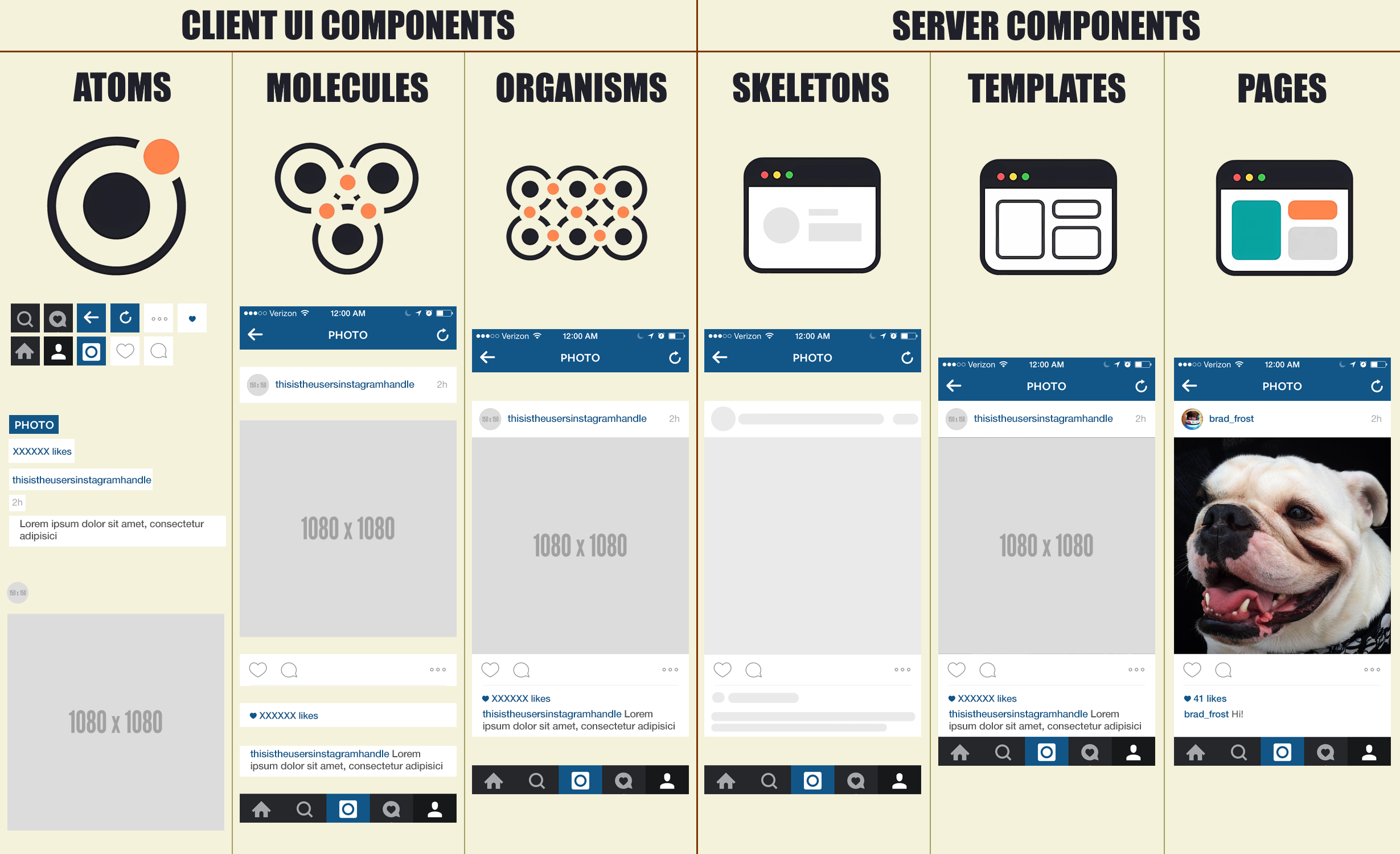 This diagram visually represents how UI components are organized in Atomic Design:
