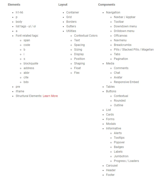 - The smallest building blocks (e.g., buttons, inputs).